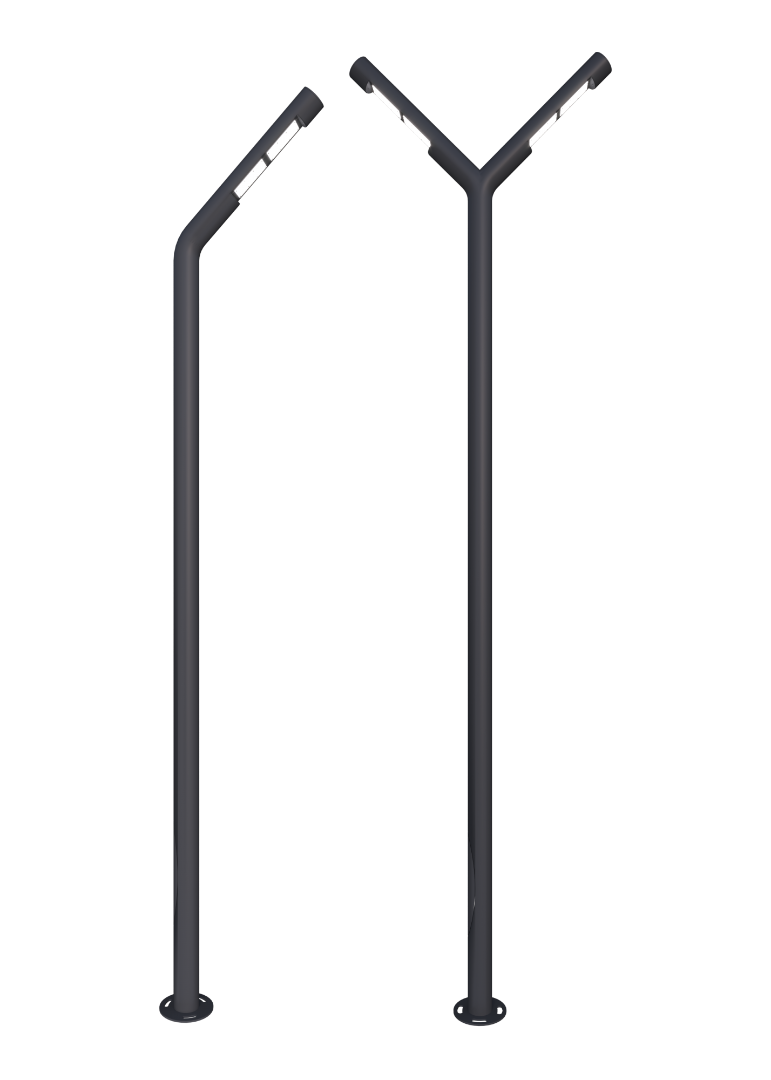 Конструкция светильника выполнена из стальной изогнутой опоры круглого сечения и интегрированной оптической части. Оптическая часть состоит из высокоэффективных LED-модулей.